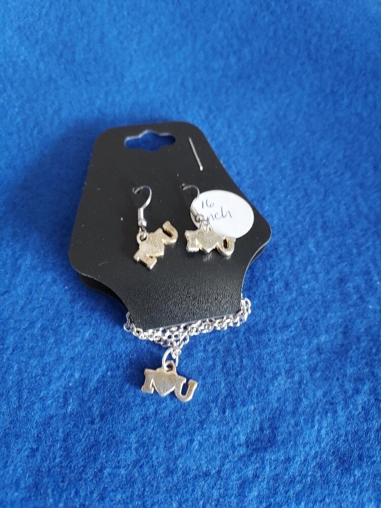 Silver tone, 16 inch chain. Last one and they go fast, make it yours.