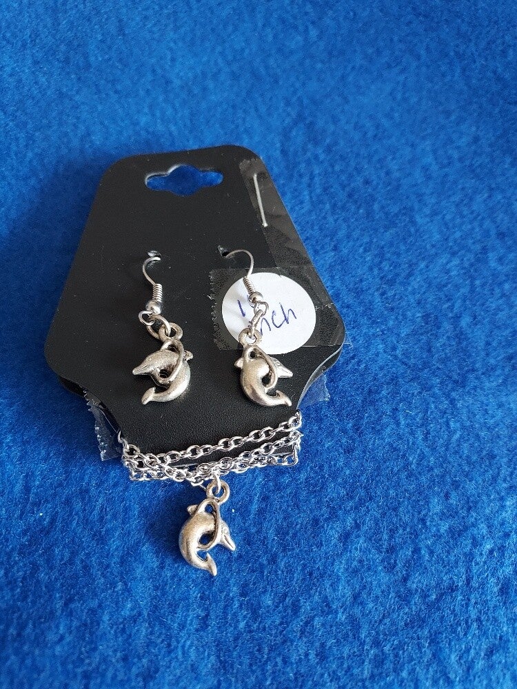 Silver tone, 16 inch chain. Only one remaining so get it for your dolphin lover today.