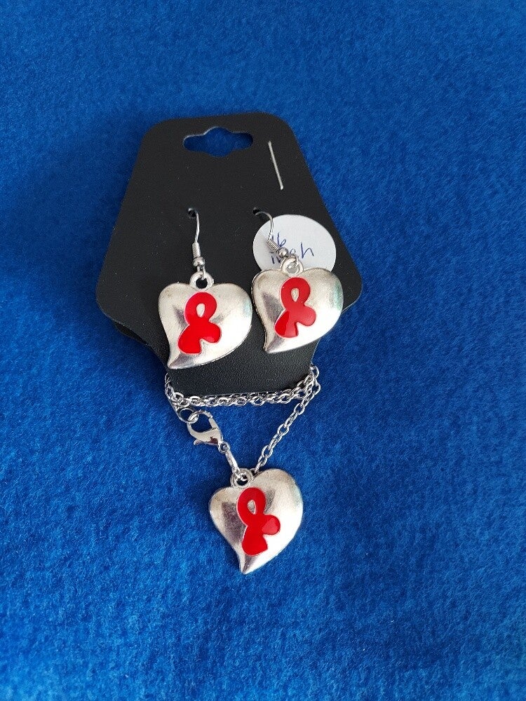Red Ribbon Heart Necklace & earring set